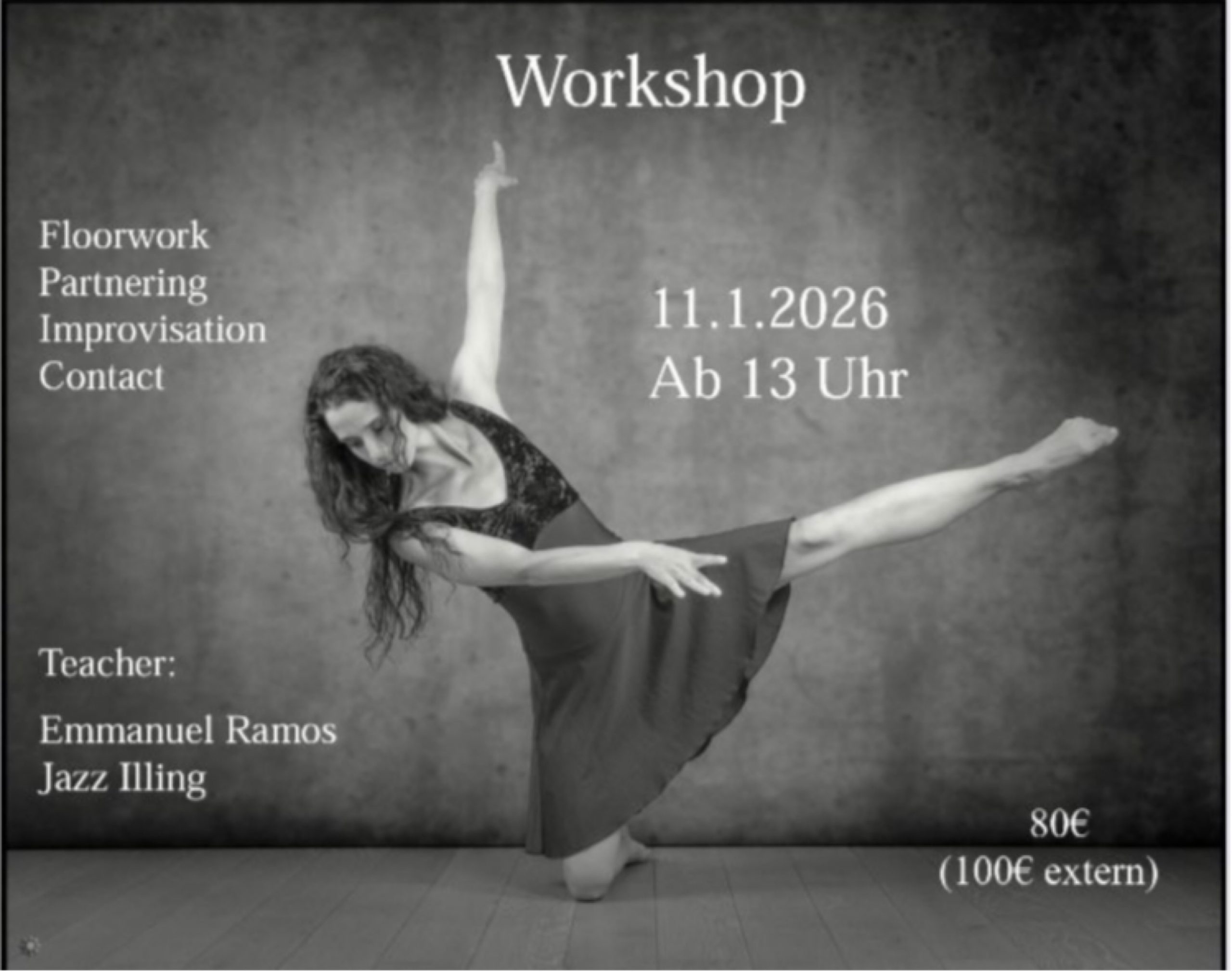 Wir bieten am Sonntag den 11. Januar von 13 bis 18:00 Uhr einen Workshop in der Sparte Contemporary Dance an.